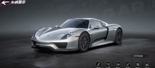 第2个是保时捷918,这个皮肤看上去比较高贵,全部都呈现出银白色。而这一个皮肤还会有一个与众不同的地方,车轮毂这地方还会是亮黑色,亮黑的颜色搭配银白色的车身确实会让人感觉到耳目一新。
