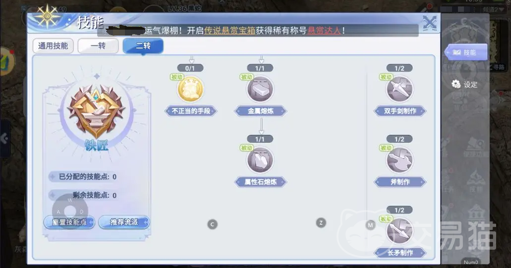 该二转的职业的主动技能,主要的作用就是对自己以及队友各方面的能力进行提升,比如说提高自己或者队友的攻击力,攻速以及移速也都可以得到加成;被动技能主要的作用也是辅助性的,可以将自己以及队友的抗性,金钱还有攻击等等属性进行增强;工艺手册这一方面,主要就是将自己以及队友的元素武器制作,属性原石制作方面进行提升。所以在选择称为铁匠的时候,要根据自己的情况,还有队友的需求来对技能点进行分配,技能点的分配需要相对比较合理才能够将该职业的能力给发挥出来。