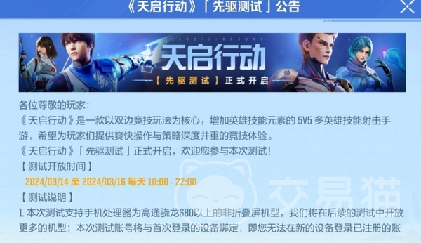 官方在3月13日正式开启了这款游戏的预约,但并没有开放面向所有玩家的测试,只是进行了一次为期很短的“先驱测试”,这次测试从2024年3月14日开始截止3月16日,而且只有每天的10点到22点这段时间会开放测试。