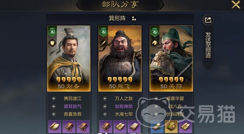 刘备、关羽和张飞这三位武将的联手其实在此类游戏中是有很多类似队伍的,毕竟在桃园三结义中主要的就是这几个角色,所以在游戏中他们的组合不仅有好用的战法,也有着很高的羁绊效果,刘备他不仅拥有卓越的领导力,还具备强大的治疗能力,在战场上大家可以使用他的战法来提升队伍的续航力,这样也能够确保关羽和张飞在战斗中得到及时的治疗和恢复。