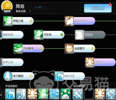 其次,在技能选择上,首先是一转技能,双眼直接加满。箭雨加满,元素箭矢点满。接着二转的技能,建议玩家在练习舞蹈,哼唱之音和为您服务三方上面点满,其余的可以根据自身喜好和套装来依次叠加。但是各位玩家需要注意,舞娘的一些技能,是需要配合诗人才能使用的。