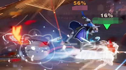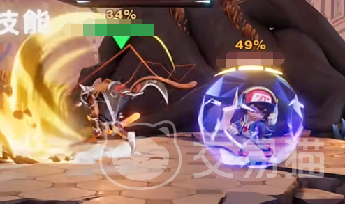 首先要带大家看的是猛击的作用,游戏中的猛击主要是用来增加敌方黄条的,这个黄条就相当于是一个状态条,这个状态条独立于血条之外,当状态条累积满了之后对手就会被击飞,只要被击飞了并且飞出场外,那就会被直接击杀,这种击杀是无视血条的。