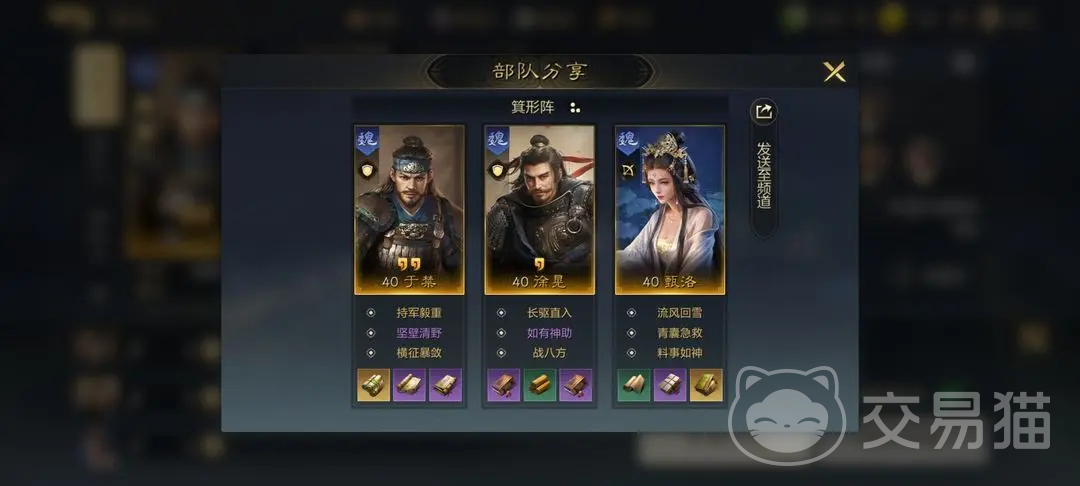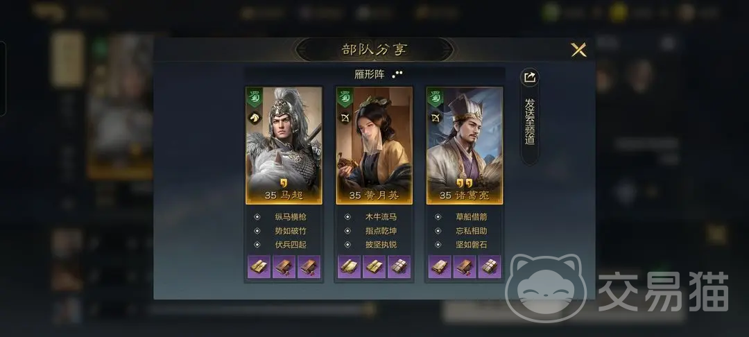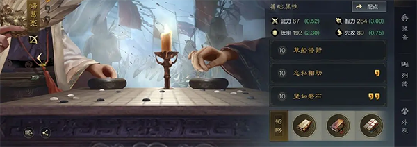 在队伍搭配方面,给大家推荐一个编队,需要黄月英以及陈到的配合,这个阵容就是可以自带着指挥以及被动的技能了,能够稳定的将技能触发,诸葛亮作为主C来使用,每次进行攻击,或者是被攻击的时候,都是有一定几率对对手造成谋略伤害的,陈到一般在前排抗伤害,黄月英则在后面提供治疗以及辅助的效果,给到诸葛亮一个安稳的输出环境。