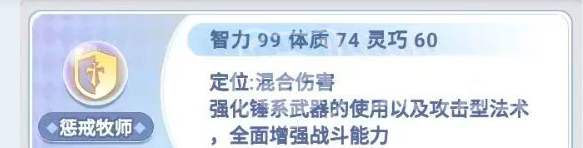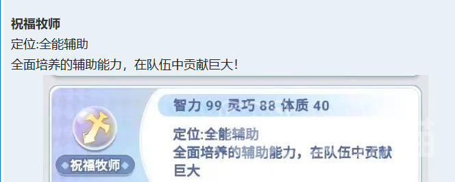 职业的属性加点主要体现在智力方面,因为他走的路线主要是以力量以及敏捷度为主,所以像是可以提高魔法攻击能力以及防御能力的智力,就是大家优选的发展方向,至于选择力量则是为了提高这个角色的物理攻击效果以及防御力,灵敏可以提高他躲避攻击的闪避能力以及输出的命中率,因为这个角色在游戏中并不主输出,所以闪避能力非常重要,确保自己的安全情况下才能给队友去叠加一些增益效果。