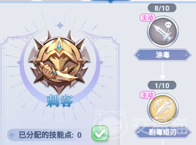 武器双持是可以让刺客左右手都可以装备武器。并且还可以提升一定的伤害。这个技能只有1级,玩家肯定需要点满的。之后的涂毒这个技能的伤害还是相当可以的,玩家们可以点6-8级为佳。之后的剧毒短刃不用点多,只需要点1级即可。