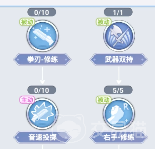 技能加点方面,首先要点的技能是拳刃修炼,因为我们用的是拳刃而不是短剑,所以这个被动技肯定要点满。之后的左手和右手修炼也需要点满,我们左手和右手需要装备两把拳刃,提升手部本身的伤害也是很重要的。