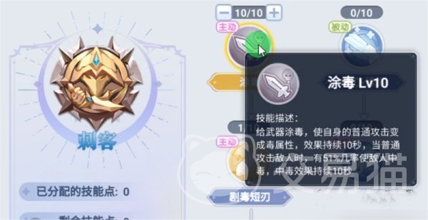 在角色达到一转时,需要将毒刃和残影技能都加到满级,这样可以保证攻击力和生存能力,随后就可以将施毒技能加7点,同时偷窃和隐匿技能也需要达到满级,可以帮助小伙伴们获取更多的资源,在进入二转之前,比较推荐大家使用这个加点模式。
