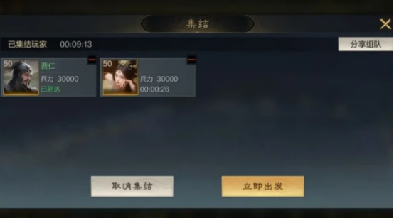 由于在游戏当中,除了玩家可通过集结自己的队伍讨贼,也可通过邀请同盟好友的方式进行攻打。比如在集结了队伍以后,也可将自己组队邀请的信息分享给同盟好友。当同盟好友收到邀请以后,就可一同去进行攻打,讨伐贼寇。邀请完毕以后可选择立即出发,如果在讨伐贼寇以后获得了胜利,玩家还可获得相应的奖励。