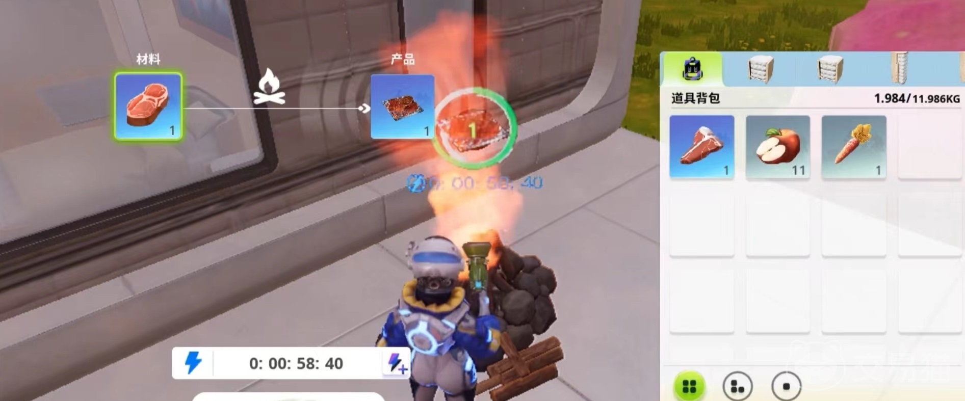 只有当玩家获得厨具才能够进行烹饪,厨具的获得需要在前期完成主线和副本任务后提升等级,然后再达到一定等级后解锁打印机,打印机这里就能够获得各种各样的厨具。当然在最初阶段可以就地取材,搭建起一堆火,这时就可以用火来进行烤制,将材料添加进来,直接就能烤成可以食用的产品。制作完毕后,点击这些食物就可以直接完成进食。有些还能够附加额外效果,使用之后有相应加成,帮助大家更好的进行野外活动。后期厨具除了用火烤之外,还会获得灶台烤炉等,这些可以帮助我们制作一些更为复杂的食物。