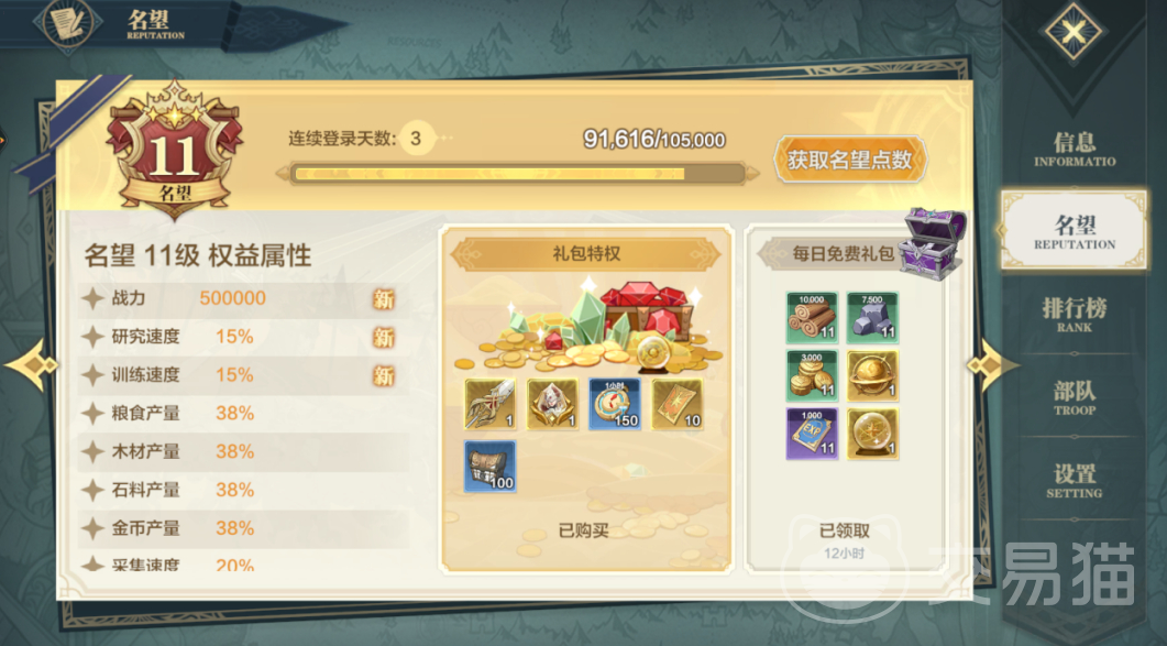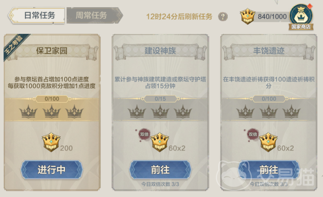 另外还有一些国家任务,例如周任务和日任务,每天都可通过占领遗迹以及刷怪,又或者说参与PVP模式。就能够获得大量的奖励,这样即可帮助大量获得超多的资源,包括徽章、宝石等。接着也有一些活动任务,只需要根据要求完成就好。