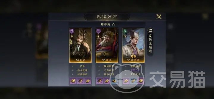 4、阵容特点:根据夏侯渊自身战法带来的超高加成和科技装备,使得其第一个回合直接400攻击力,因此爆发伤害是非常高的。副c张辽完杀效果可以进行收割。