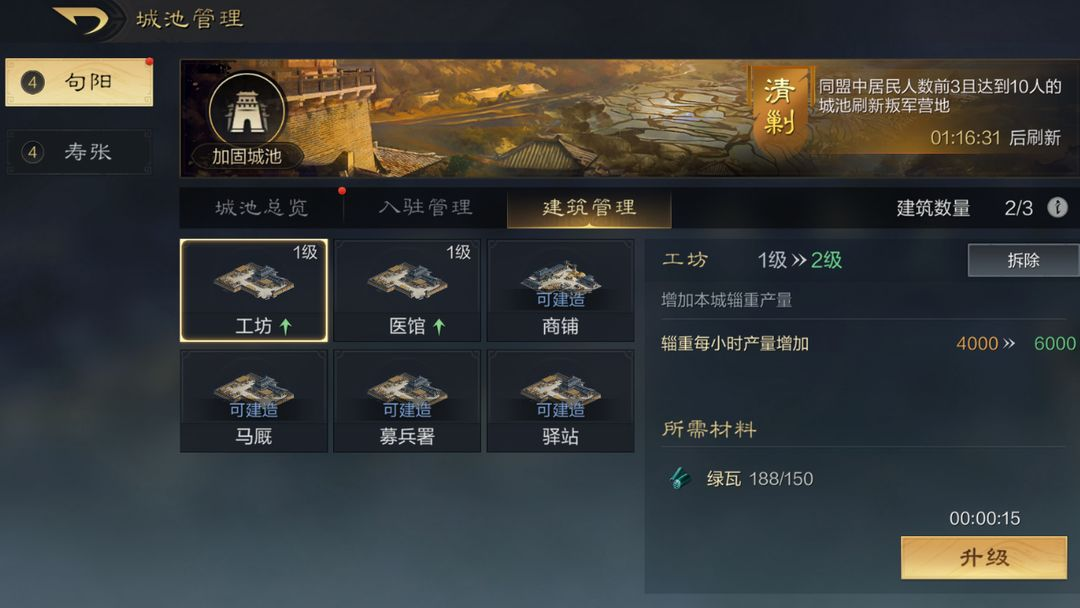 以上就是小编为大家带来的三国谋定天下如何搭建营帐攻略,这个玩法还是比较基础的,大家在日常游戏的时候也会经常用的到,毕竟是需要频繁征兵,大家可要记得去使用哦。