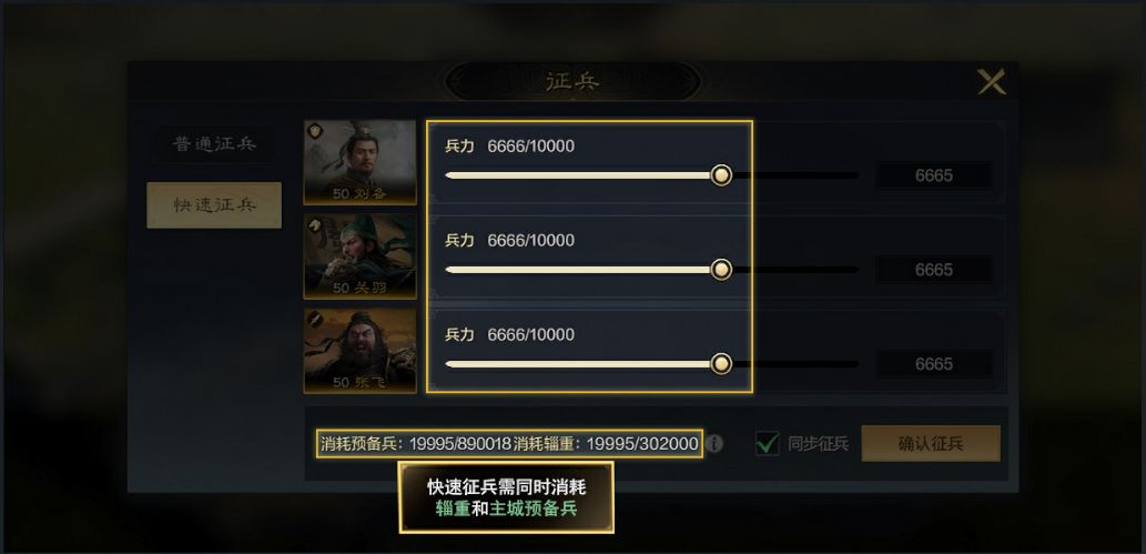 2、方法和联盟领地内征兵流程相同,先派兵到营帐内,点击打开征兵,就可以使用辎重和预备兵实现快速征兵了。