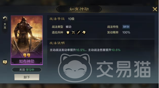 当然关于想要让自己的主动技能得到发动的话,也需要成功的发动一次威震华夏,只是想要成功的发动威振华夏也不是一件容易的事情,发动成功率只有45%,所以需要先带上增加主动发动率的战法,比如如有神助。