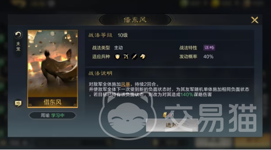 玩家需要注意的就是,这两个战法在释放时是有顺序的,不然的话是不能够达到很大的伤害力。比如当武将带着两个战法的时候,就需要将蓄势待发放在第二个战法栏当中。任人择势则放在第三个战法栏当中。