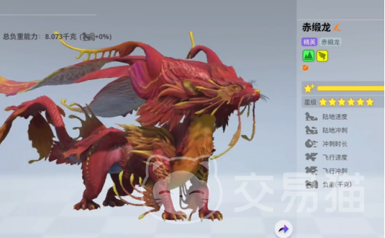 赤锻龙属于精英坐骑,整体的星级以及推荐指数比较高,属于六星级坐骑,总负重能力也非常高,达到19.139千克。这个宠物的外观非常帅气,无论是在飞行时还是在行走时都有独特的外表,有较高辨识度。根据数据可以了解到陆地速度为996,陆地冲刺为1195,冲刺时长为3,飞行速度比较高,达到1295,飞行冲刺达到1554。