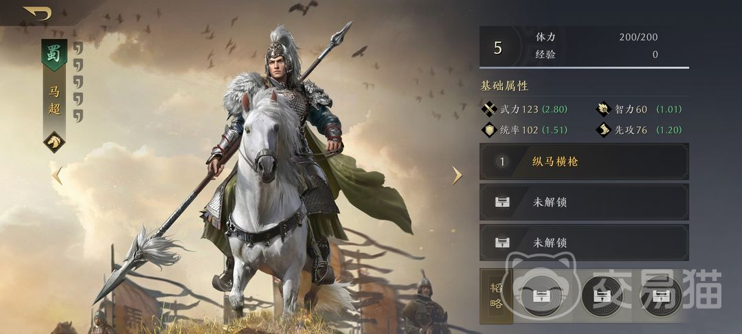 3、马超:纵马横枪、文治武功、摧坚克难。