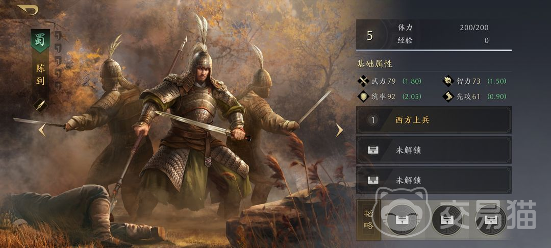 3、陈到:西方上兵、蓄势待发、铸甲销戈。