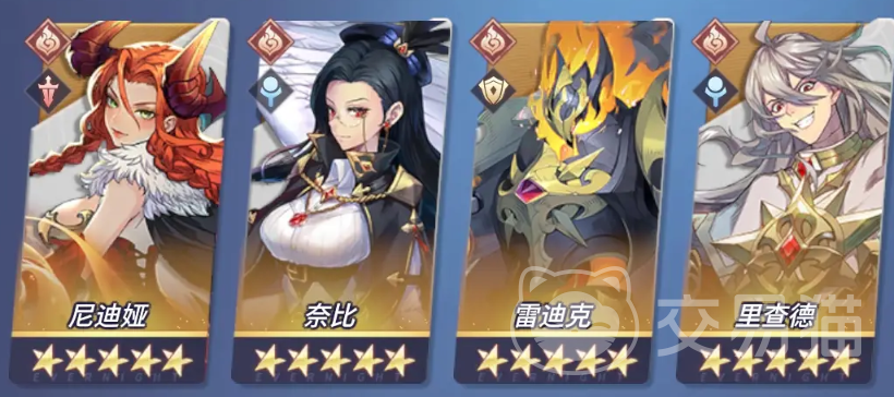 这个游戏里的英雄按照属性有5个系的划分,分别对应:土、草、火、冰、闪耀。所以阵容一般也是围绕这属性来配得的,利用不同属性之间的“元素反应效果”来组成队伍。