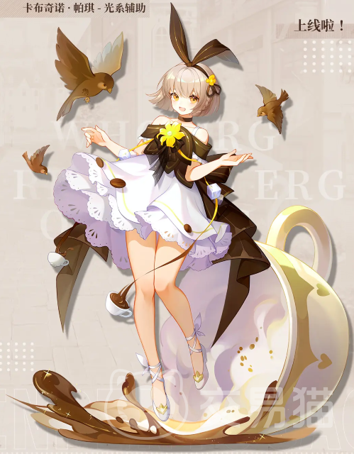 再往后是第三位t0角色卡布奇诺,游戏中卡布奇诺是大陆神秘组织黑金的继承人,做为继承人的她自然拥有强大的实力,这个实力体现在她的技能上。技能方面,她的技能偏向于辅助强化系,这些辅助强化系的技能可以提升全队的伤害,还可以降低敌方的属性,另外还能提高自身的基础属性,还可以召唤精灵来守护己方全体,为全体加血,给到全体一次复活机会。就辅助能力来说,卡布奇诺是当前游戏的天花板级别,因此她排在排行榜第三的位置肯定是没问题的。