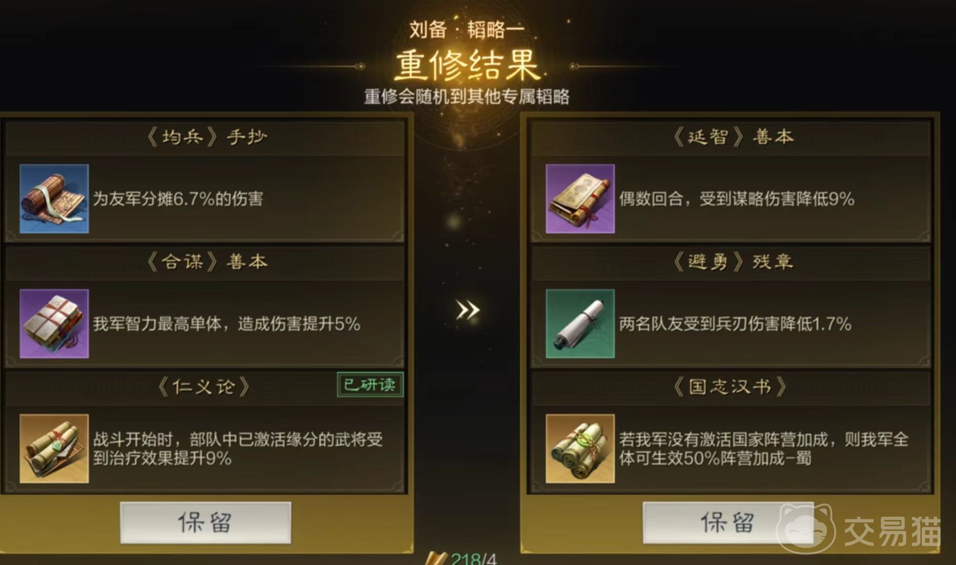 在作战时每个回合还会恢复兵力,恢复兵力的程度由等级决定,等级越高所能恢复的兵力规模越大,当达到满级时,就可以恢复百分之九十左右的兵力,期望恢复率也高达百分之三百六,刘备的减伤和加血能力使得队伍的续航能力大大提升。