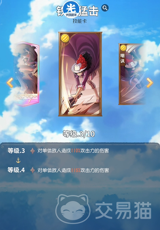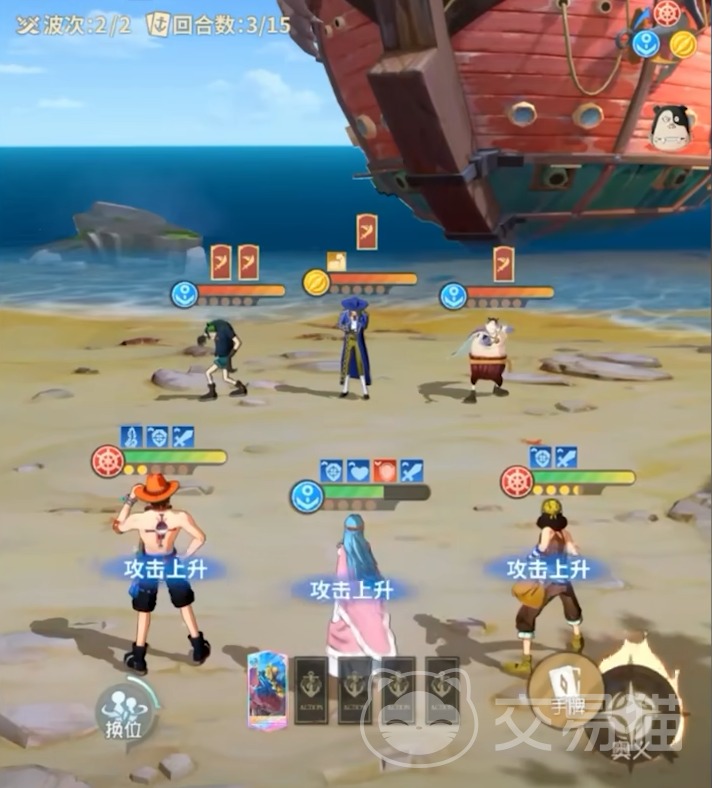 奈美——【热带低气压】属于单体伤害技能,并且给敌人挂上攻击下降效果持续一回合。【晴好天气】可以选择一个队友,抽取对方3张技能卡牌,并且给对方叠增伤效果,持续两个回合。【天打雷劈】属于群攻雷系伤害技能,并且随机抽取队友2张卡进行升级。