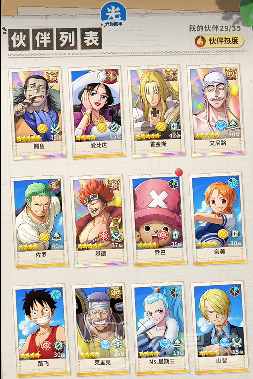 以上就是有关于航海王梦想指针女角色有哪些的全部内容了,在游戏内玩家们可以招募的伙伴角色比较多,但是女性角色数量还是屈指可数的,并且除了王女和艾比达,其他的出场率并不高。