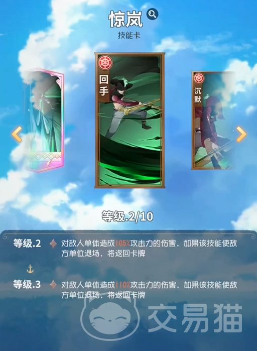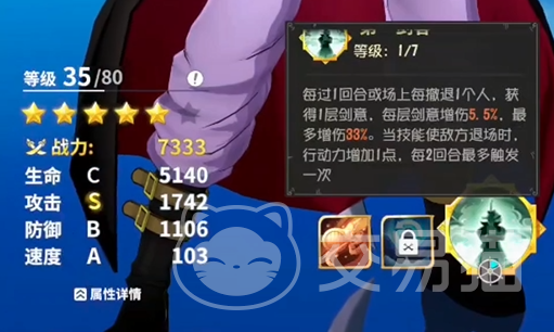 自带被动【第一剑客】可以让他根据场上撤退的人数来叠加自身的剑意,并且在击败敌人之后还可以拉条,这样一来,很容易触发连动效果。技能【惊岚】单体伤害技能,如果使用该技能击败敌人就可以再次使用一次。【黑刀斩】也是属于一个高额的单体伤害技能,叠加的剑意可以让他无视对方的防御,打出伤害还有沉默几率。