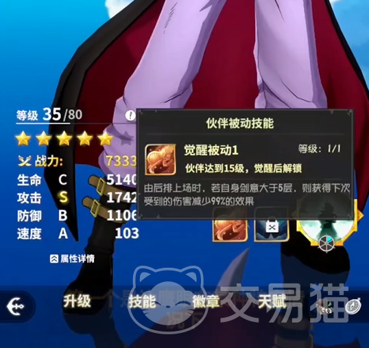 当米霍克达到了15级之后就可以解锁第一个被动技能,当他在后排上场并且身上剑意叠加到五层就可以获得一个99%的减伤效果,该效果堪称是一个小无敌。这样一来,米霍克在战斗期间就可以更加放心的去进行输出了。到了35级之后就可以解锁第二个被动技能,在触发该技能之后,米霍克可以无视对方挂的减伤效果,依旧打出高额暴击伤害,这样就可以保证他在阵容中的主C能力。