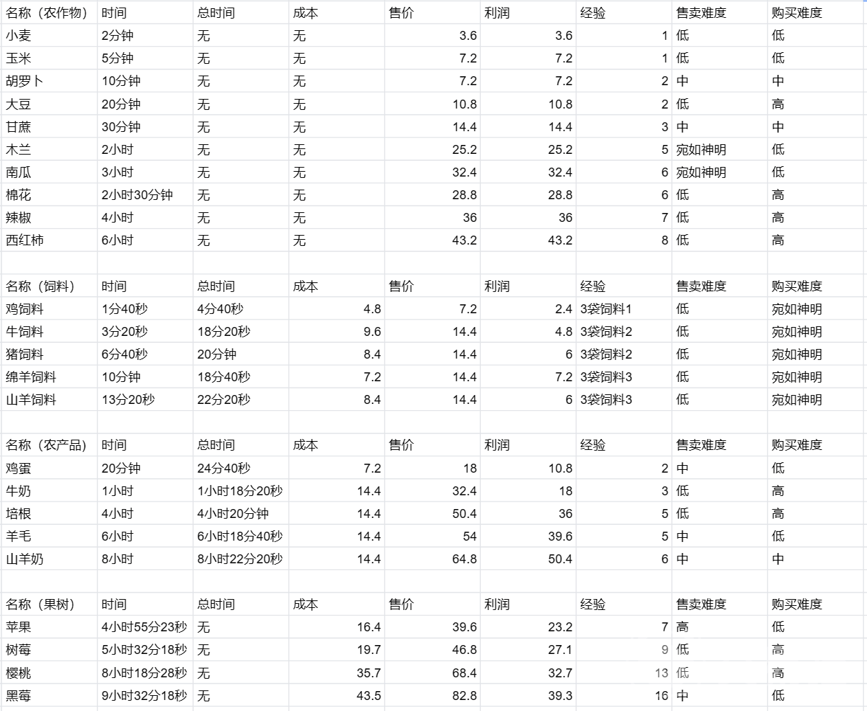 卡通农场游戏中,游戏的魅力在于它模拟了真实的农场运营,让玩家在种植、养殖和生产过程中体验土地到餐桌的全过程。今天小编来分享一下卡通农场产品收益表,希望能帮助各位了解一下农场产品的基本信息,我们需要选择最合适的作物和动物,安排生产流程达到最高的经济效益。