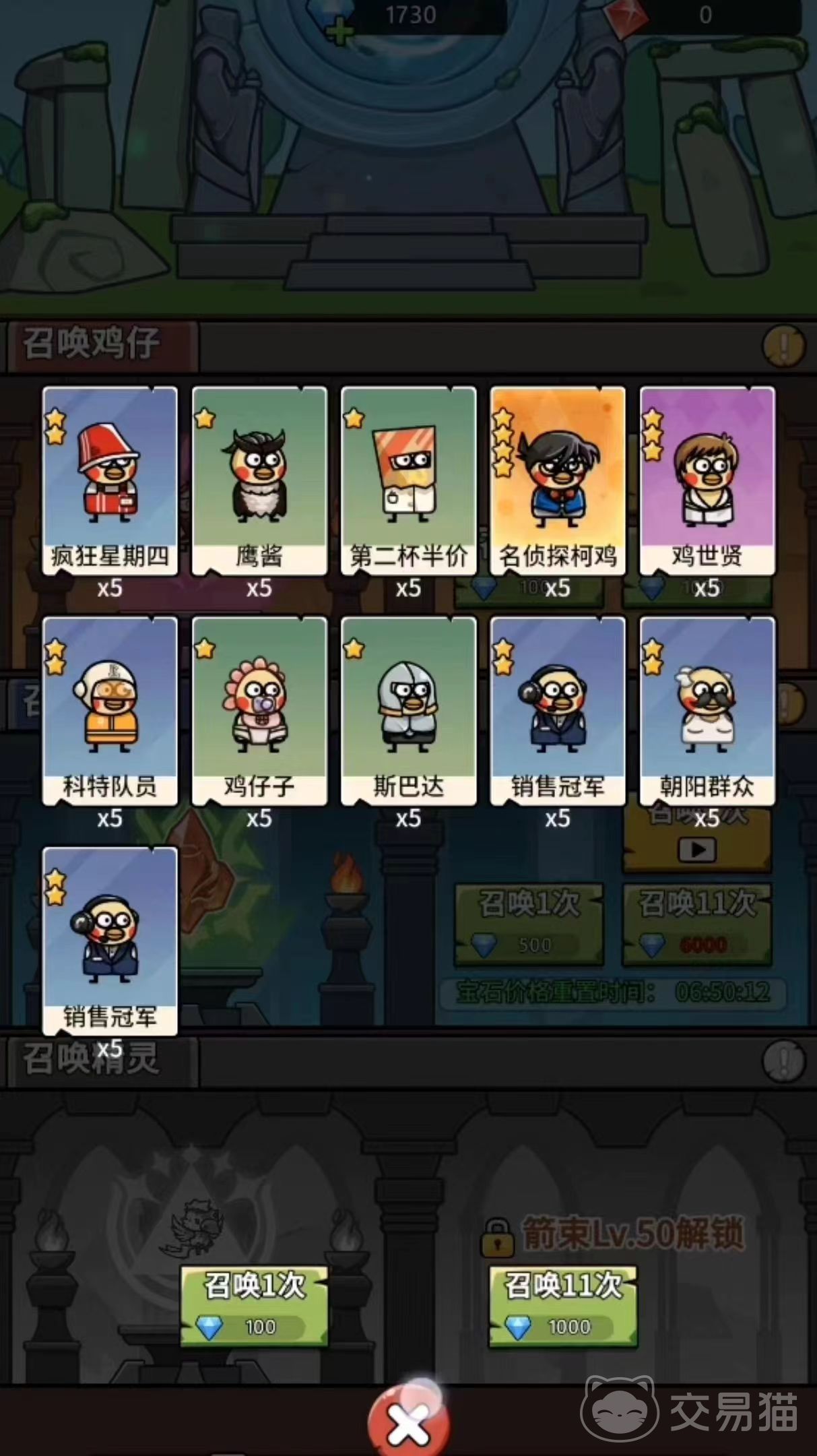 玩家在进入游戏后可以进入火炉中进行炼制箭矢,箭矢同样分为不同等级,相同等级的箭矢可以合成炼制更高级别的箭矢,等级越高,箭矢为小鸡仔提供的攻击力就越强。玩家要是想获得新的小鸡仔角色,可以通过解锁完成关卡和挑战,也可以在商店用金币进行购买,同时可以利用召唤的方式进行获取,但是这个方式需要消耗钻石。