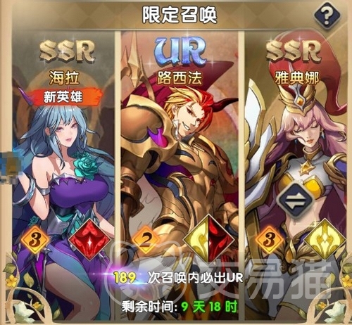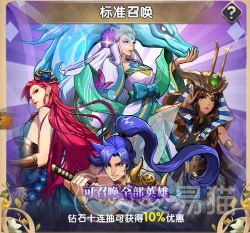 目前一共有4个卡池,分别对应限定召唤池、标准召唤池、阵营召唤池、友情卡池。限定池一般在出新英雄的时候会出,有保底,而且会随着你抽卡次数的增加提升抽到目标英雄的概率,如果是vip用户,还能享受更多加成。限定卡池要用限定召唤券或者钻石,300钻一抽,10连无折扣。
