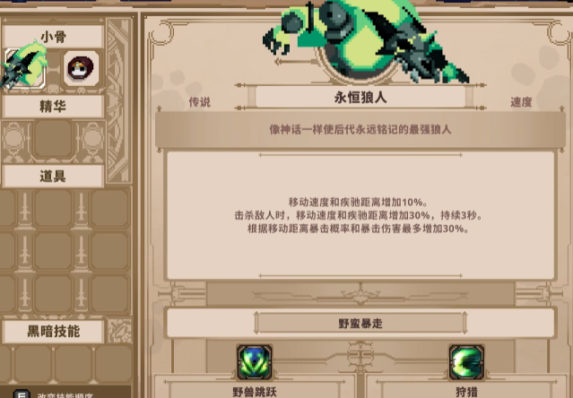 狼人,这也是很多人喜欢玩的头骨,技能方面只要有狩猎就可以了,狼人可以使用的配装有许多,除了绝对零度与晕眩不太适合外,其他的都不能玩,狼人移速很高,被动加暴击率与爆伤,只要有狩猎这个技能打boss的话怎么样也都不会太差。 只看头骨自身其实伤害不高,比较依赖核心道具,但可以玩得配装思路有很多,因此能够增加输出的核心道具也很多,只要装备成型几秒内蒸发boss不成问题。