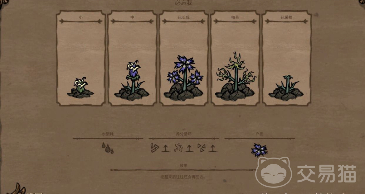 第4种必忘我,它也是一种非常良好的消炎植物,配合蜂蜜和冰块可以做舒缓的药物,能让你的伤口好的更快,可以快速恢复45点的血量,延缓疼痛感,大量种植这个草药,可以在需要的时候直接使用。