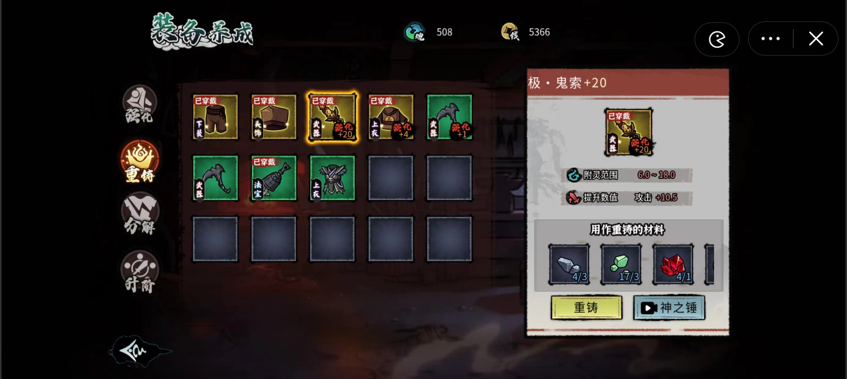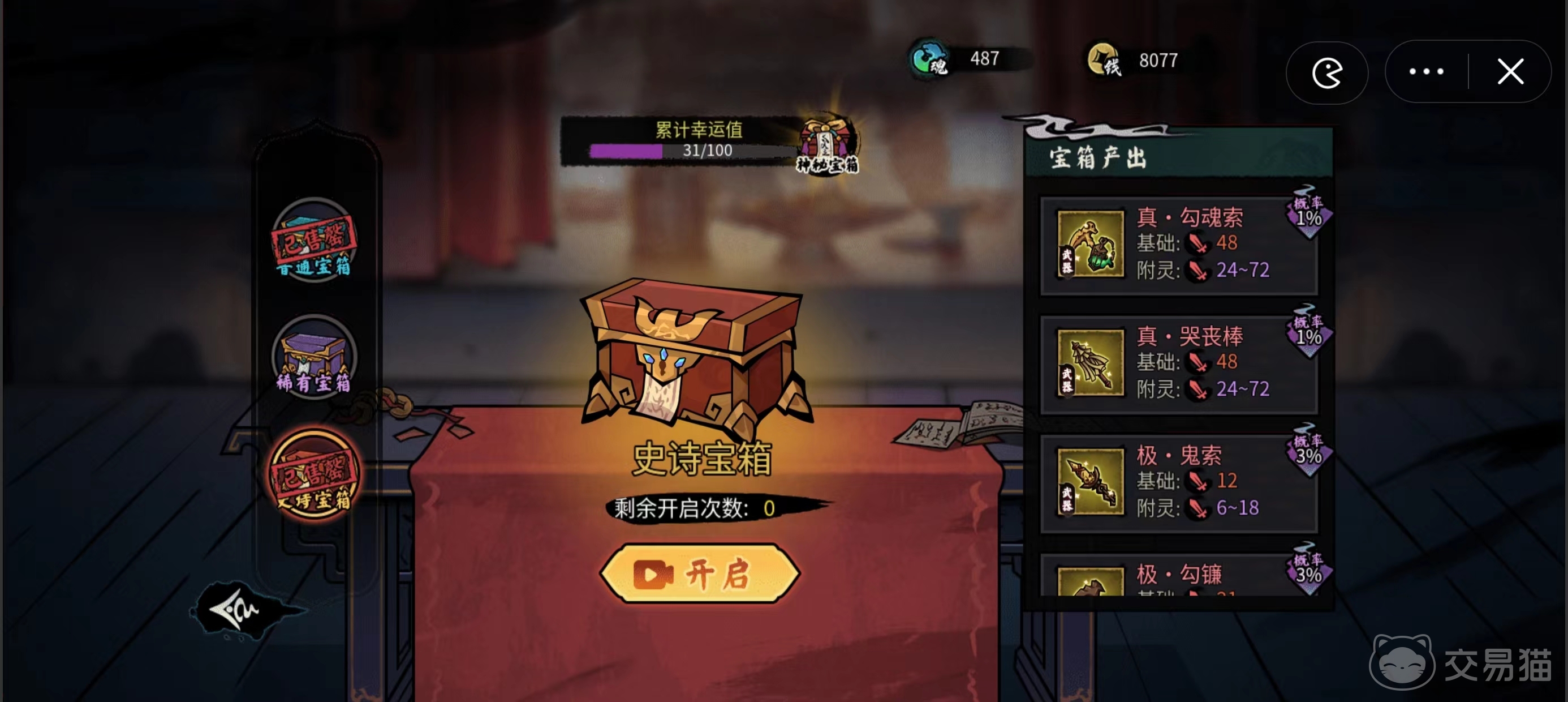 阴阳果可以去找收阴阳果的npc兑换金币,这也是每天一笔稳定的收益。关于商人方面大家需要注意,目前除了收阴阳果的npc以及收矿石的商人之外,其他都是黑心商人,他们会拿了货不给钱,所以和商人打交道一定要特别注意。在游戏界面右上角,阴界裂缝满100%后就可以去找夜游神购买装备,小编建议是抽其中最高级别的真勾魂索和真哭丧棒这两个武器,之后能够拿去重铸和升级,这是非常合适的装备。