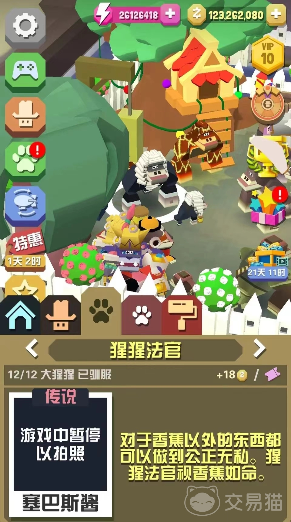 第六个是猩猩法官,当用猩猩对很多动物进行撞击的时候,有可能这个动物就会出来,而且随时是可以刷新的。