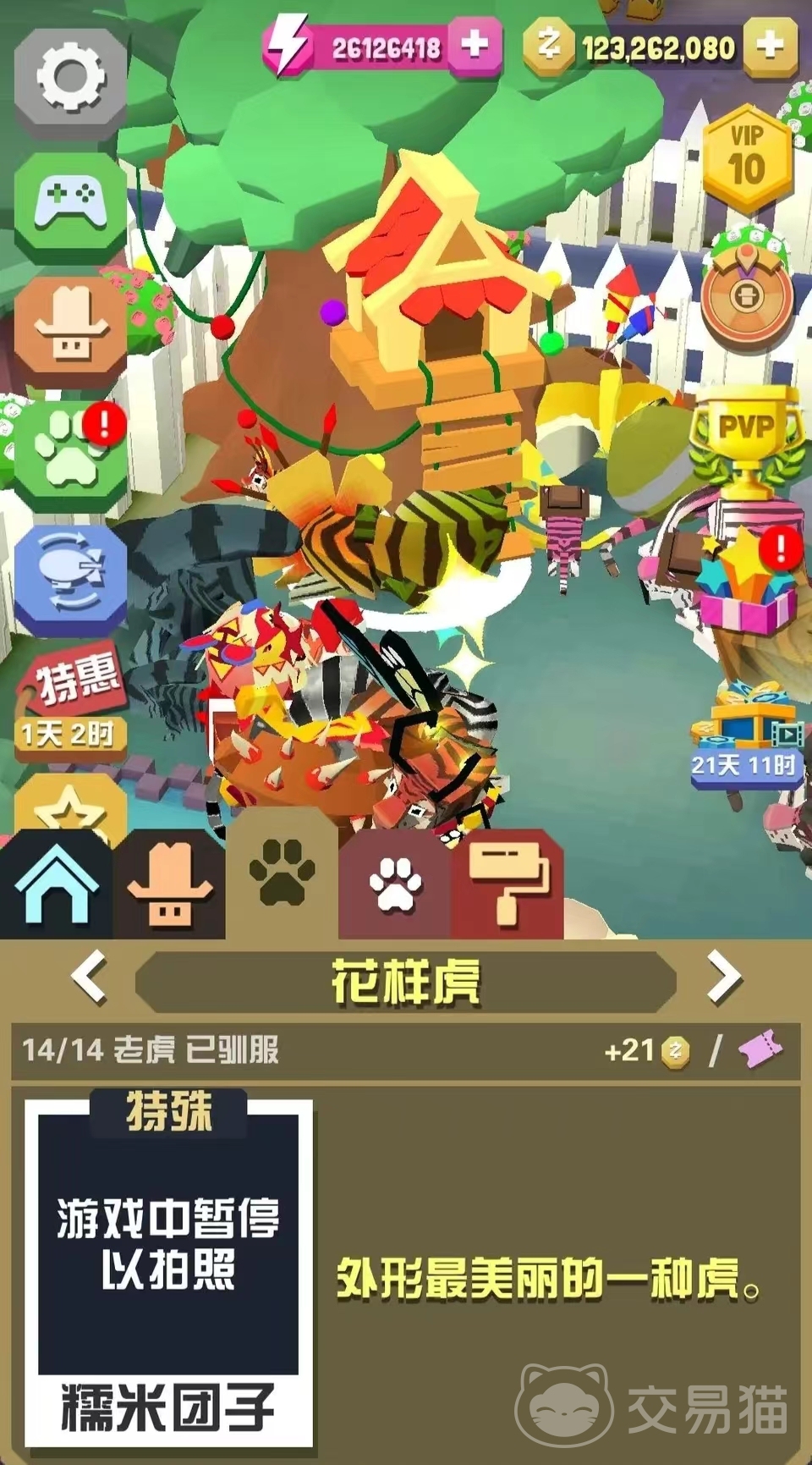 第十个是花样虎,想想获得花样虎的话,可以参与到boss任务中去,花样虎将会随机出现,玩家运气好就能领取到了。