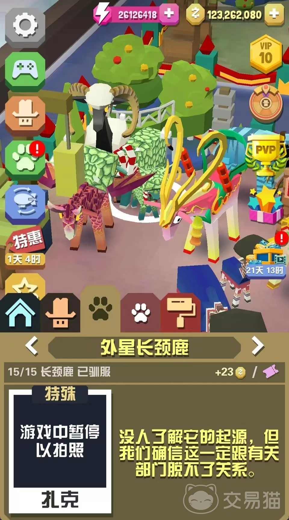 第三个则是外星长颈鹿,这个动物也是会随机出现的,例如在某些任务的时候就可能会得到。