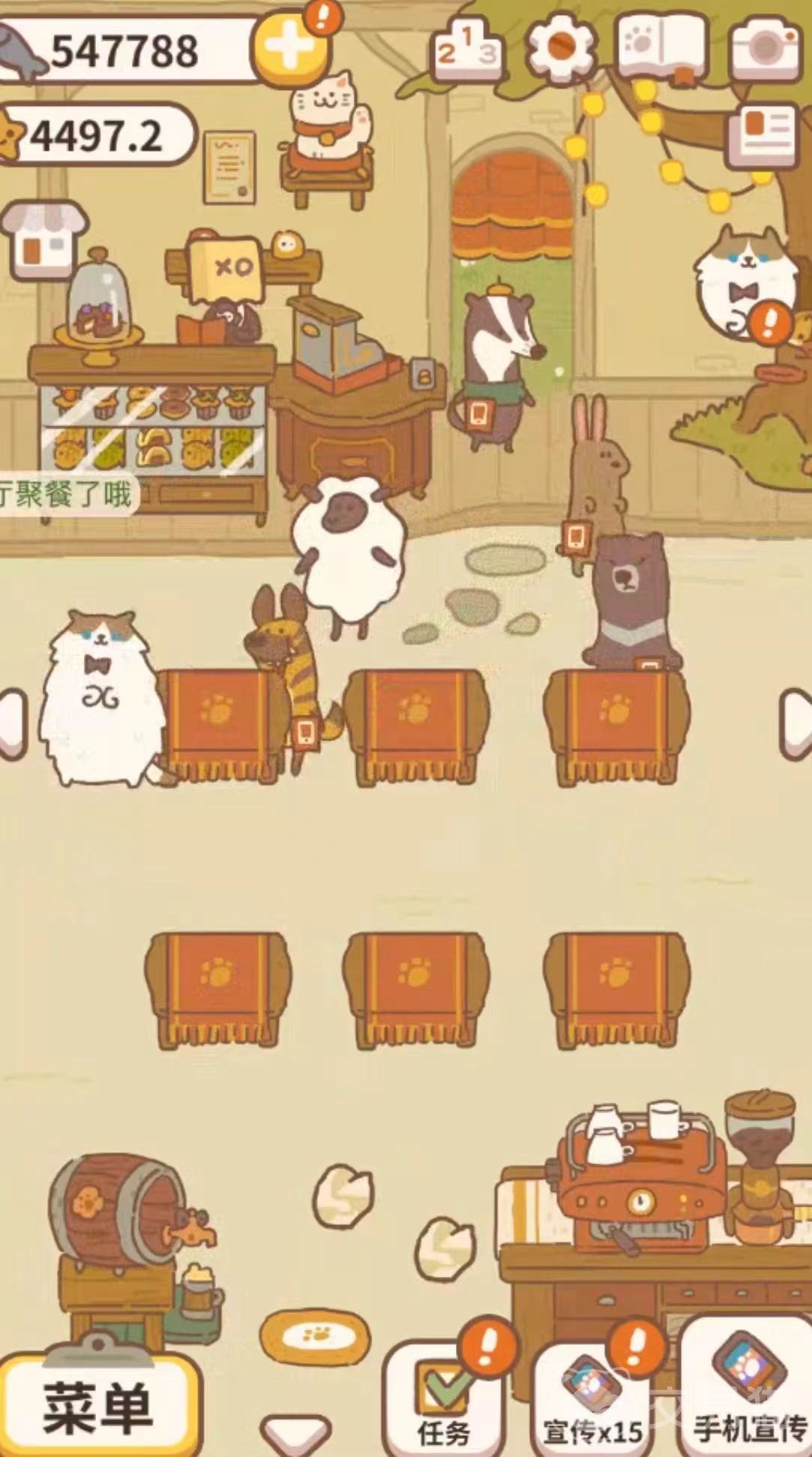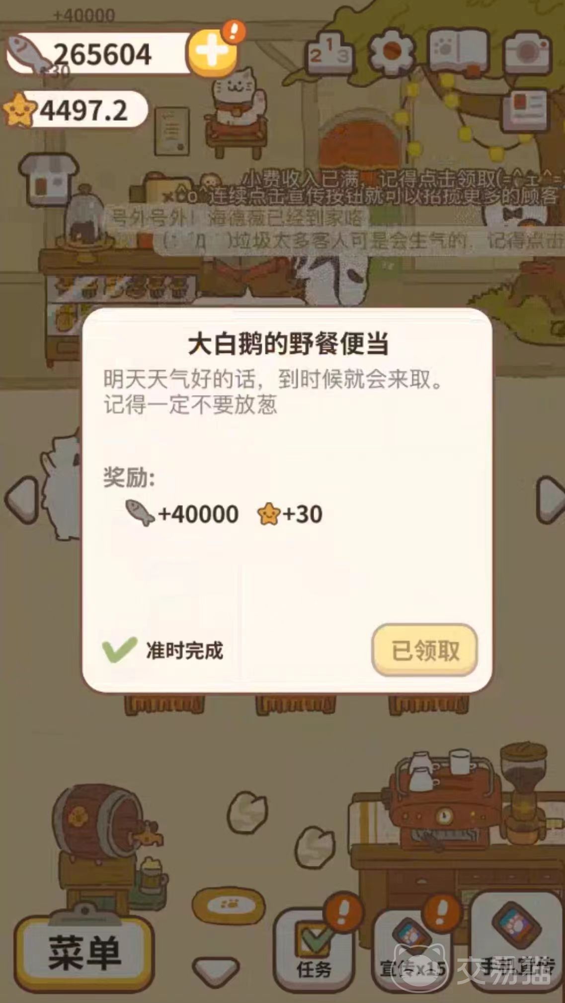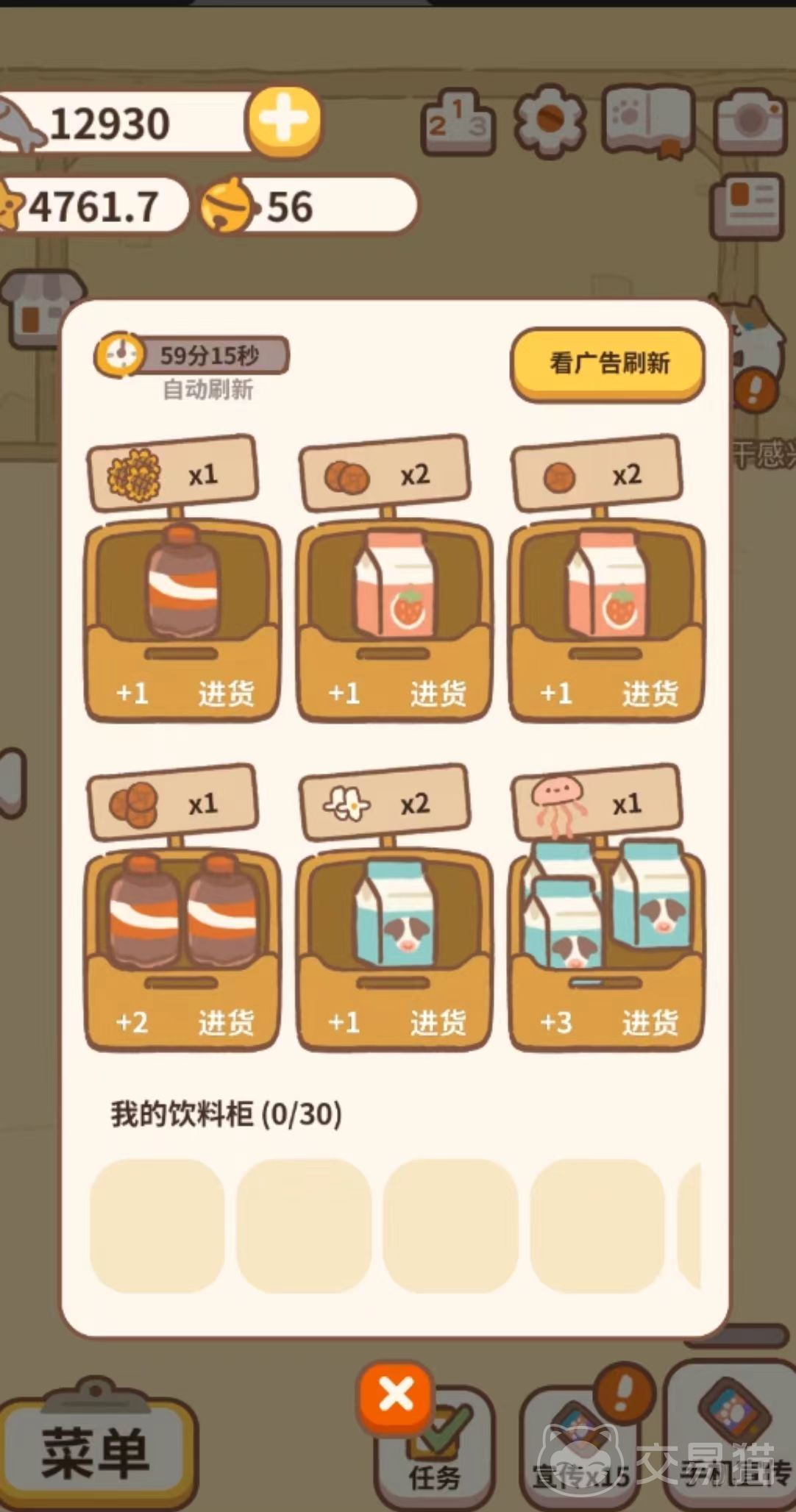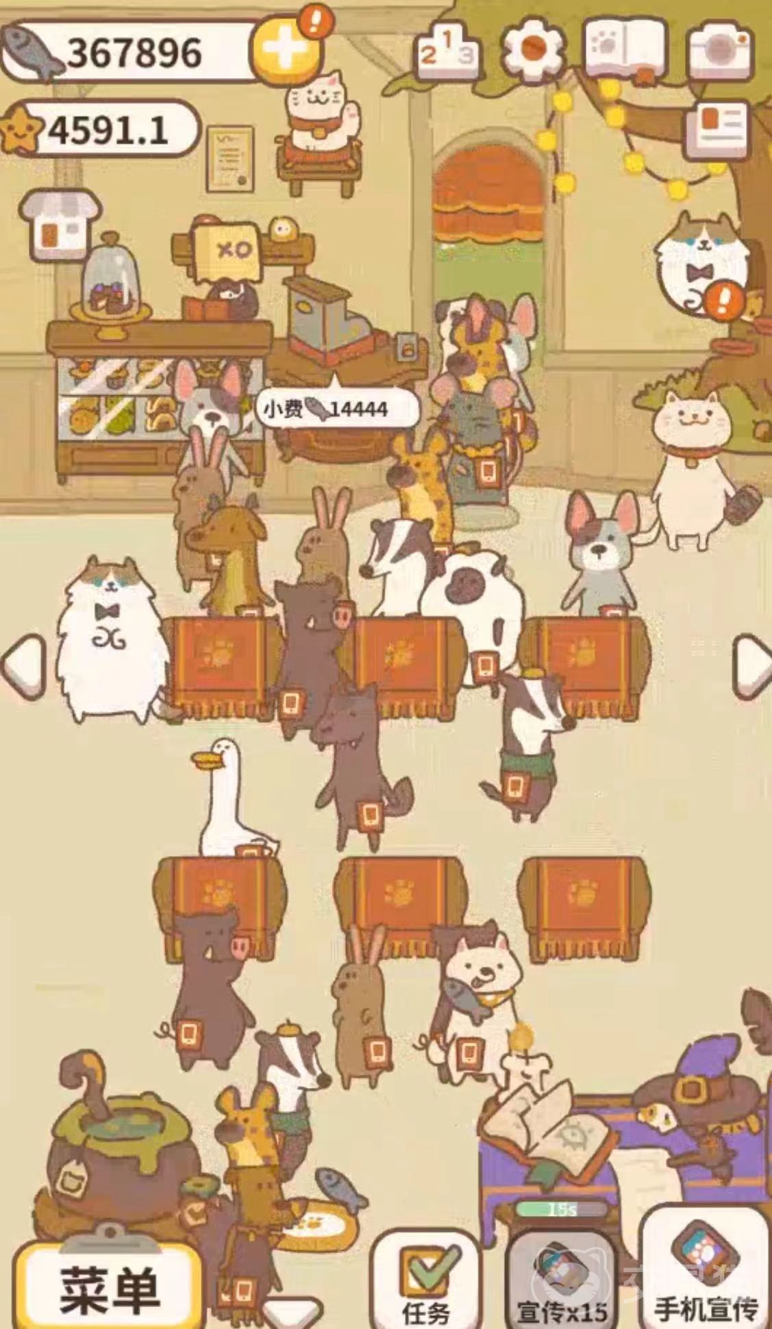 要想获得更多的铃铛,玩家需要多接取订单,在动物餐厅主页按右边的三角箭头来到厨房,再按一下就可以来到外卖商店,点击电话接单以后就可以看到很多的“饿了喵”订单,在这里接单完成任务后就可以获取到不同数量的铃铛。如果玩家有想要购买的东西就需要努力积攒铃铛啦。