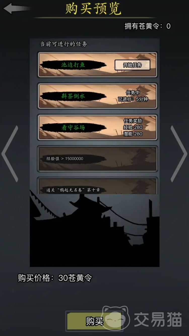 每日签到是获得苍黄令的首要途径。每天登录游戏,领取签到奖励将获得一定数量的苍黄令。而且完成日常任务也会奖励你苍黄令,所以务必不要错过这些机会。必须花大力气收集。而且通过苍黄令换取的几个可选任务,像是斟茶倒水、看守谷场等任务也在前期能帮助我们获取大量经验值,非常值得大家重视。