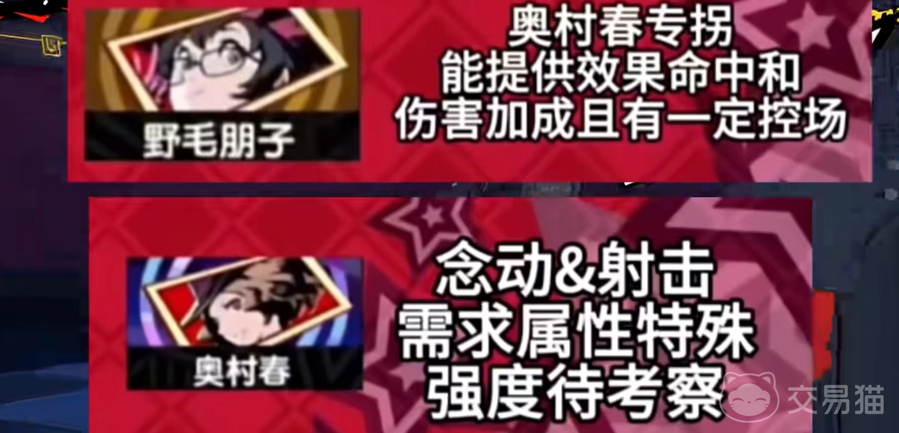 第三个为大家带来的是野毛朋子,这个角色非常适合擅长使用辅助的玩家,并且选择这个角色的玩家可以直接解锁意识1,在队伍中使用其功能。而且这个角色上手难度特别低,预约就可获取,非常适合萌新玩家。