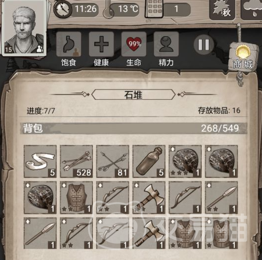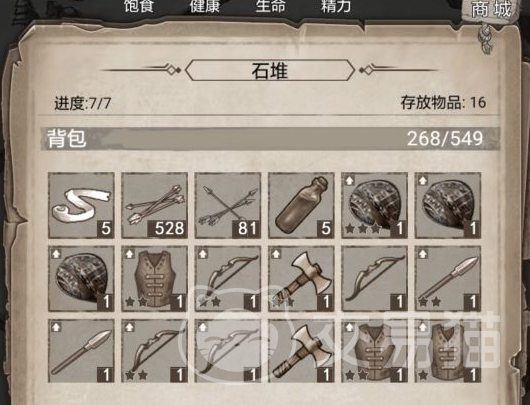 3、食物:建议可以保留1~2天的食物供应,可以根据实际的情况去保留食物,就可以避免饥饿,可以维持角色的生命值。