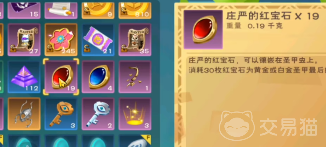 7、宝石有三种颜色,分别是红色、蓝色、绿色,根据个人喜好去选择,小编使用了30个红宝石完成修复,就会获得白色红随圣甲虫了。到这里就算是完成了圣甲虫的解封了。