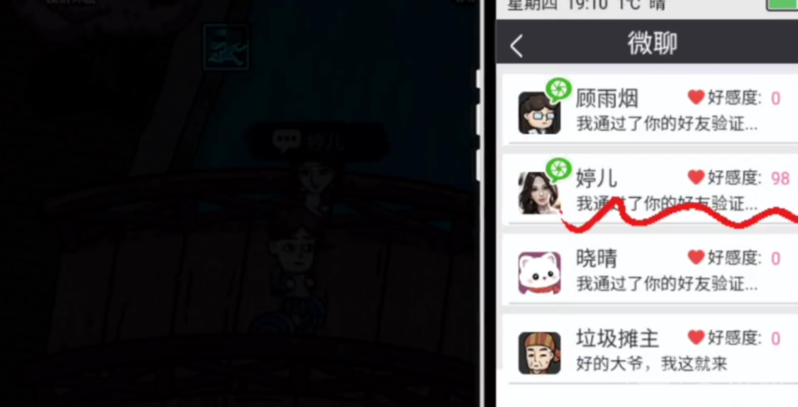 当我们和婷儿一直触发完成任务时,婷儿对我们的好感度也会一直提升,350好感度时我们就可以向婷儿表白,450好感度时就可以见家长,550好感度时就可以和婷儿一直在一起了。
