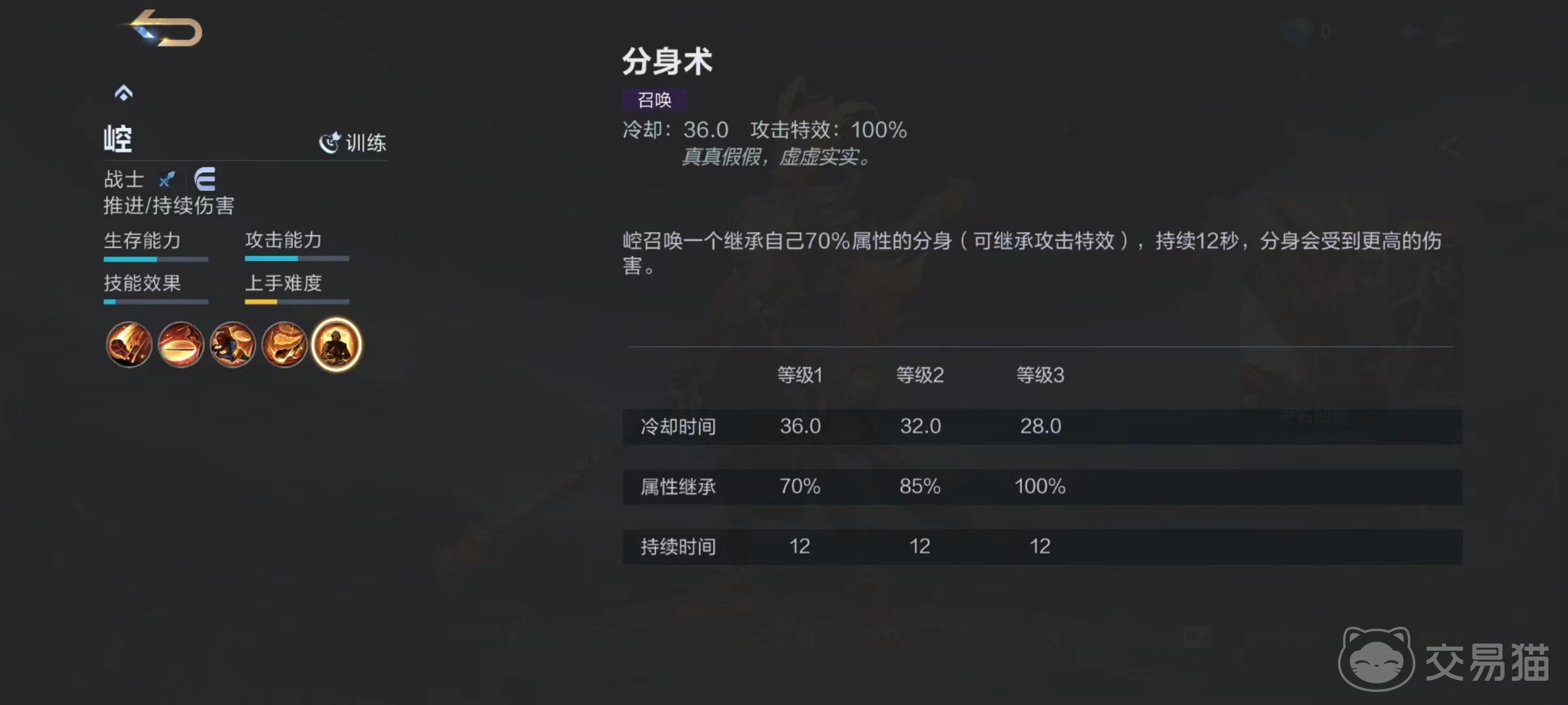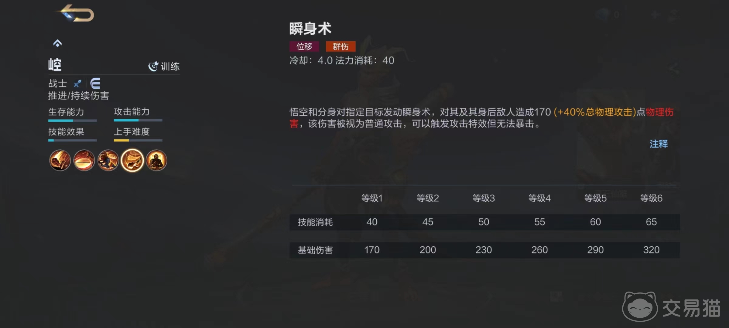 当悟空对敌人造成伤害后还会降低防御,另外召唤出来的分身造成伤害,会为自己本体恢复生命值,能够召唤分身是很多玩家使用这个角色的重要原因。一技能扔出手中的金箍棒,召唤出一个分身,分身会主动攻击敌人,不需要自己操作。二技能隐身之后向前方位移,原地出现一个分身。一二技能会共享冷却时间和伤害加成。二技能是极其关键的使用技巧,很多玩家在不了解的时候往往会被分身所迷惑。