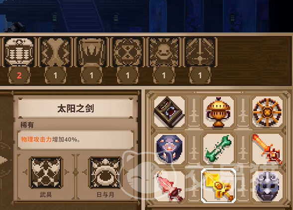 日与月这个效果比较好凑,大家只需要同时获取并装备日之剑和月之戒就可以了。日之剑(太阳之剑、Solar Sword)的效果是能够直接提升我们40%的物理攻击力,一般来说就是普攻、物理技能的输出伤害会高一些。