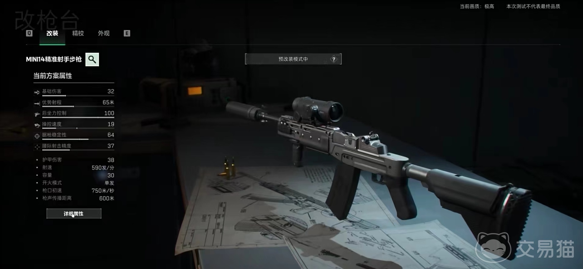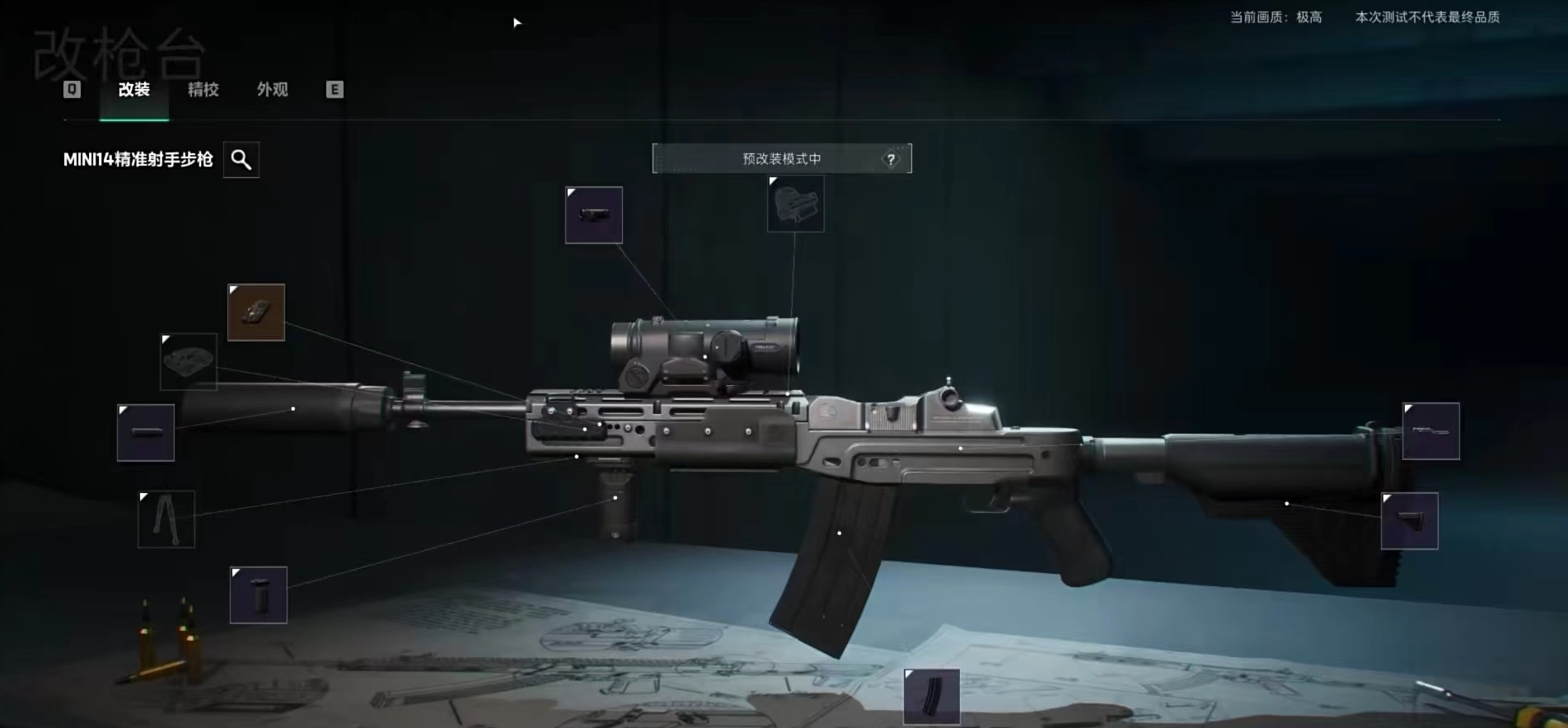 Mini14最大的特点就是在三个程度的距离都能够打出优势,而且没有太多难度,看到人直接点就是。在改装过程中,配件可以灵活搭配,但是要达到100后座外加63举枪稳定性,其他方面可以根据自己兴趣来搭配。毕竟Mini14是一款远距离武器,所以还要多堆一些举枪稳定性。在近距离战斗的时候,甚至可以不用打开瞄准镜,单单靠准星就可以在近距离消灭敌人,毕竟有着很好的稳定性,直接射击就是。