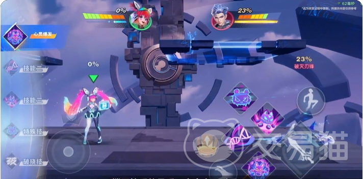 一技能使用之后,可以将自己的数据玩偶投影出来,通过旋转的方式攻击敌人,撑开护盾的时候,最后一击可以将对手击飞,长按使用技能一,可以控制自己的玩偶熊向前上方进行移动,并且攻击对手,这个招式出手比较快,而且可以持续对前方的区域进行打击,不论是防身还是手边,都是不错的招式。