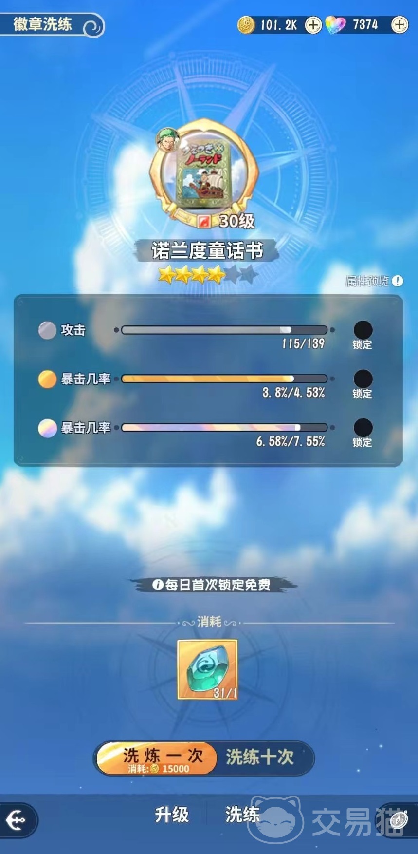 每个角色都可以装备4个徽章,徽章获取到手之后还需要再提升等级,提升过程中除了消耗基础材料之外,也需要消耗有5、6个相同徽章才能达到满级。每一个都有三条洗练属性,洗的时候需要一块去重新生成,如果想要锁定,要额外消耗宝石。所以在徽章系统中,大家也需要投入较多资源才能达到满意的状态。
