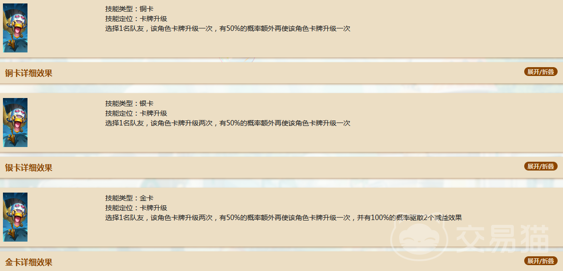 王女薇薇属于五星级支援类型角色,携带的三个技能分别是友情使命,黑鸦冲锋和友情召唤。友情使命效果可以选择一名队友将该角色卡牌升级一次,有百分之五十几率额外再使该角色卡牌升级一次。在铜卡时的效果就是这些,但如果升级到了金卡,那么还有一个附加效果就是有百分之百几率为目标驱散两个不良状态。可以说有了王女薇薇的辅助,另外一张角色卡牌在等级方面将会得到极大提升,这是很多强力核心角色都需要的。